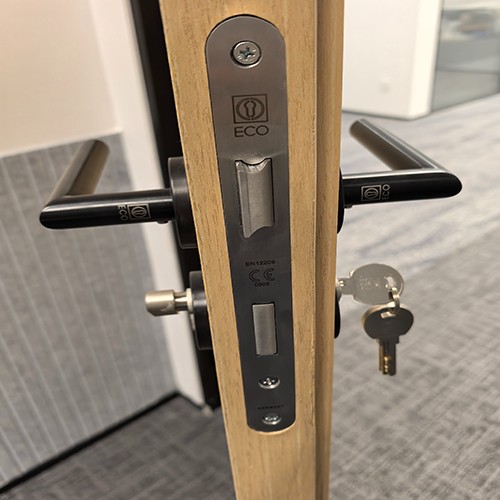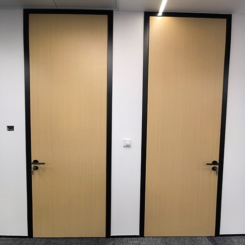 This door combines the low-maintenance convenience of paint-free wood with tailored sizing and premium German hardware, making it a practical yet refined choice for modern office spaces.